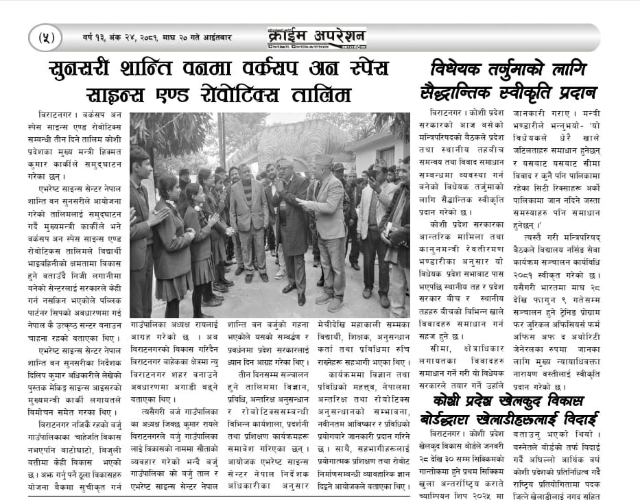 • Location: Shantiban, Barju-05, Sunsari (In the premises of Everest Science Center Nepal Pvt. Ltd.)